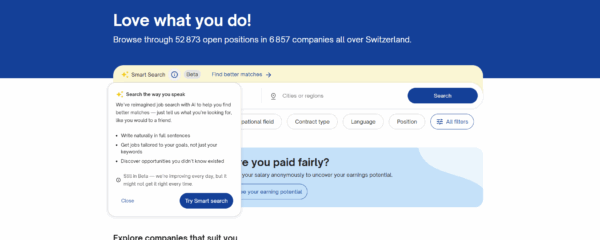 jobs.ch est la plateforme d’emploi leader en Suisse. Vous trouverez certainement votre job idéal parmi les annonces publiées quotidiennement et pouvez postuler directement en ligne.